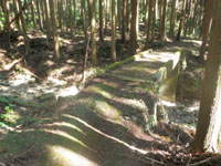 洞門を過ぎると、道は2方向に分かれます。ココは右方向に下って行きます。『八草谷』と書いてある看板がありますが、すでに支柱となる杭からは取れてしまっていて、朽ち果てる寸前ですので、今後いつまでこの案内があるか分りませんが、まぁ迷う場所ではないでしょう。 |