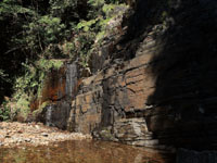 その上の岩壁には濡れた跡があり、以前そこに滝が流れていたであろう気配は伺えますが、全く水が落ちていません・・・。ホント悲しくなりましたヨ。