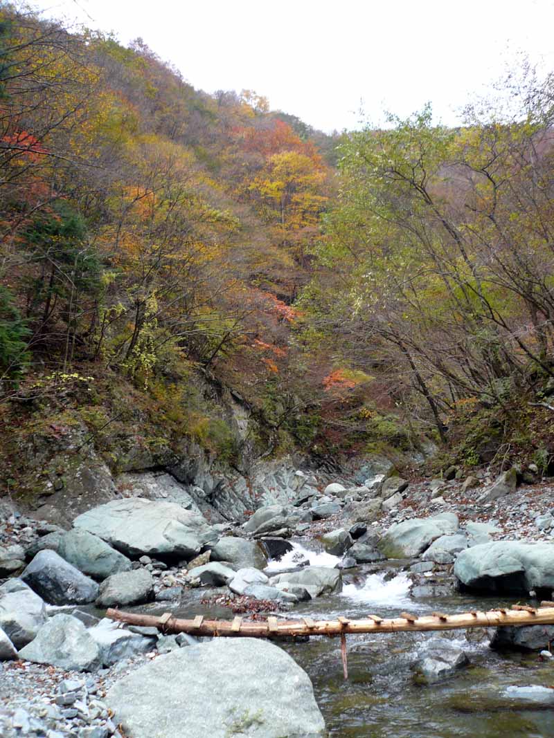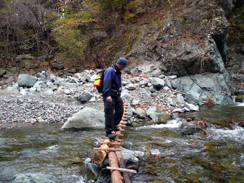 丸太橋とがらおサン。丸太橋を睨みつけ、こちらも圧倒。