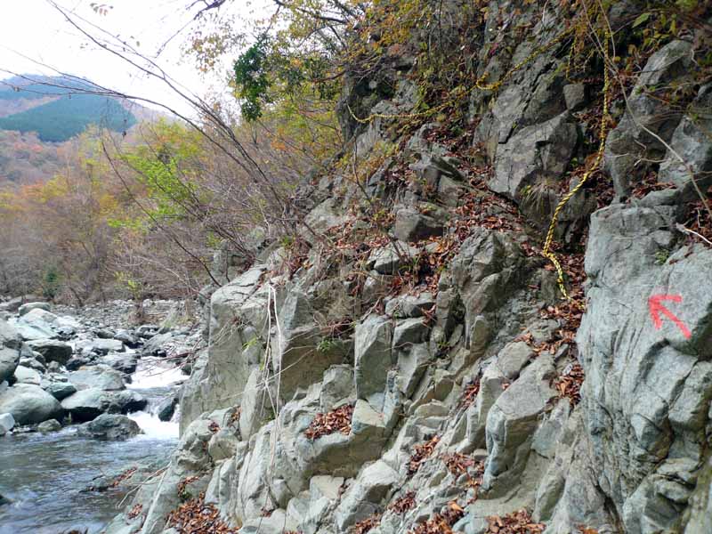 トラロープを頼りに岩場を行く