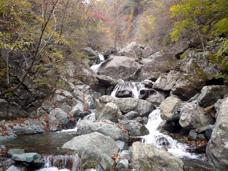 どこからどこまでが滝か良く分からないが、迫力がある流れ。
