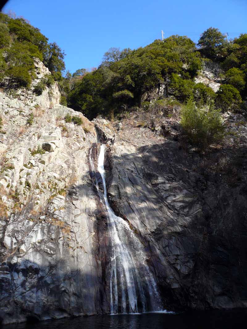 上流にダムがあり、放水しているらしいがこの日は水量が少なかった。でも美しいフォルムの滝