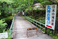滝入口までの道路ですれ違った車はゼロだったし、同方向に進行する車も2台しか見なかったので何となく予感はあったのですが、駐車場には他車はゼロ・・・。当然、滝までの遊歩道に人がいるはずもなく、遊歩道といっても結構険しい道なので『熊でもでるのでは?』と心細くなってしまいました。