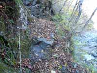 遊歩道と言うか登山道に入るとすぐに、急勾配の登り。しかも足場が悪く鎖場状態。山の中の紅葉もほぼ終わり。余計に急勾配がこたえます・・・