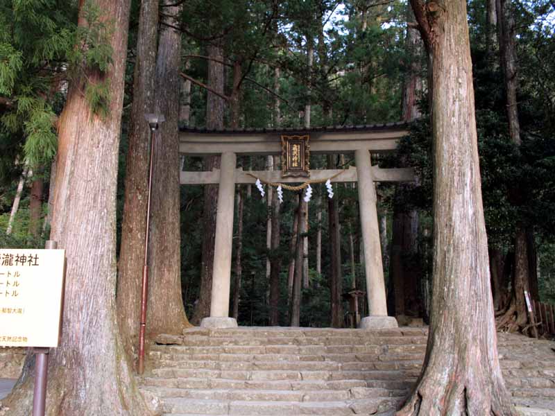 鳥居をくぐり、綺麗な広い石段を下っていく