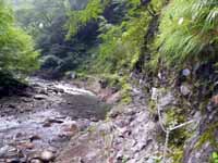 アップダウンを繰り返しながら進みます。上りも下りも距離がなく歩きやすいので息が切れるようなことはありません。そうこうしていると、大久保の滝につきます。大久保の滝の先は、ジグザグの長めの上り階段ですが、これも歩きやすくラクラククリア。しかしこの辺りから雨が振り出します。酷くならないよう祈りながら進むと、三重の滝に出会うところで、道が二手に別れています。が、案内がなく一瞬戸惑います。下流側は滝見台で、すぐに行き止まりです。上流側に進みましょう!当たり前か。 この辺りから道がガレてきますが、特別難易度が高い所はなく、またアップダウンもキツくないです。 その後、美くしい瀬や、数々の奇岩、竜神の滝、貞泉の滝などが次々に現れ、歩く時間も全く気にせず楽しめます。疲労感も全くありません。 |