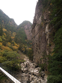 この平等ー吊橋が今年(2012年)の3月に竣工し、七ツ釜滝への道が開通したわけでその新しさのためなのか、吊橋自体は高所恐怖症の私でも全く怖くない!