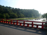 しか〜し、写真の橋を渡る手前には、ラブホテルが数軒あり、最悪の雰囲気。橋から阿武隈川を除くと、あまり綺麗でなく早くも興醒めに・・・ |