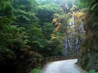 この滝は、県道に面しており、誰でもお手軽に観ることができます。写真は県道からのものですが、県道はまるで遊歩道のように細いです。
