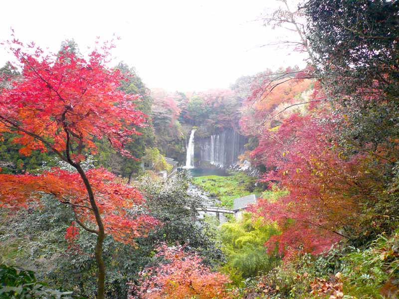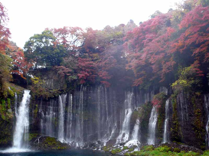 滝壺は大量の飛沫でガスがかかっているように見える。