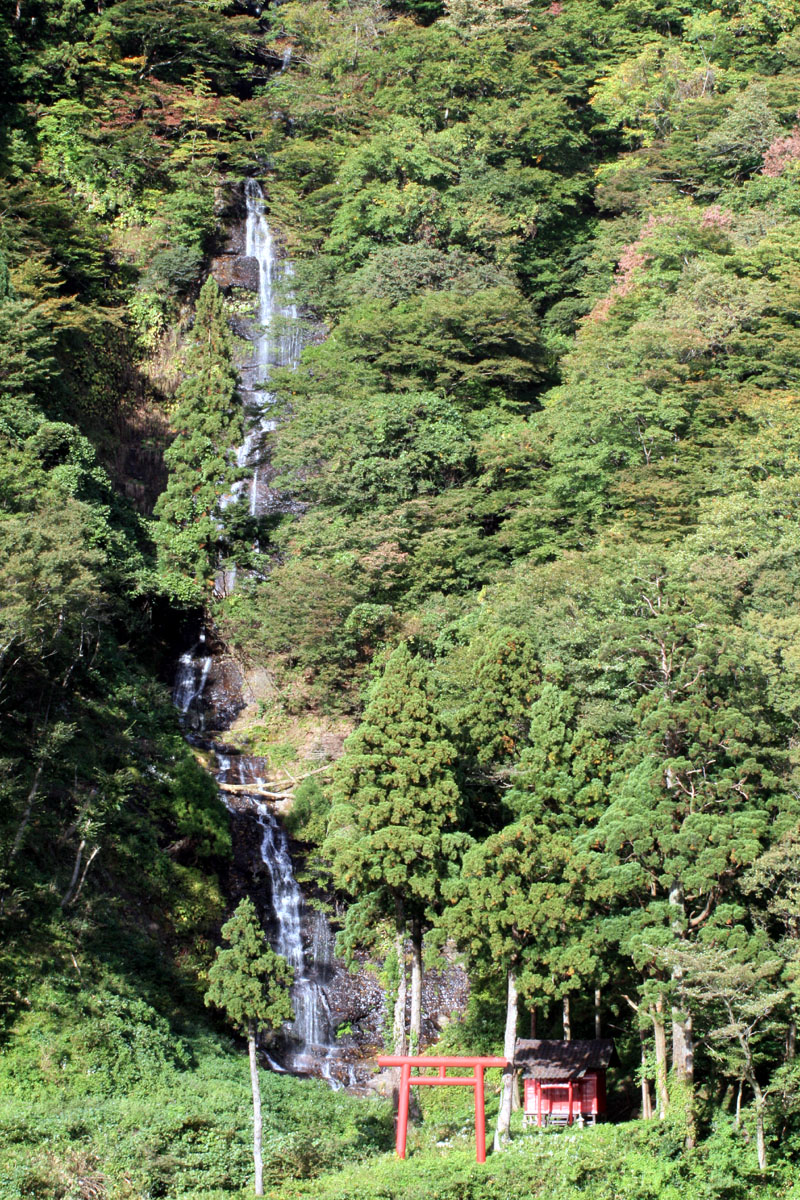 川幅の広い最上川対岸からの遠望のみ。正面の姿はドライブインの中からしか見られない