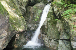 | 三頭大滝(檜原村) ウッドチップが敷き詰められた三頭山の登山道を20分ほど。 滝見橋という橋の上から見る。 都民の森の中なので8時以降しか駐車場は利用できない。 訪問 2008年5月4日・2011年7月23日 お気に入り度 ★★ |