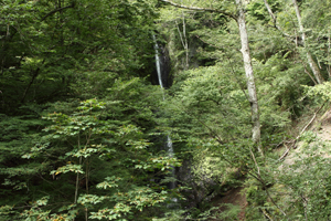 | 白髪滝(甲府市) 100名瀑の仙娥滝の上流にある板敷渓谷の入り口にある。 遊歩道入り口すぐの橋から見る。 訪問 2012年8月9日 お気に入り度 ★ |