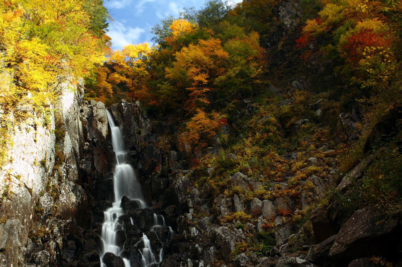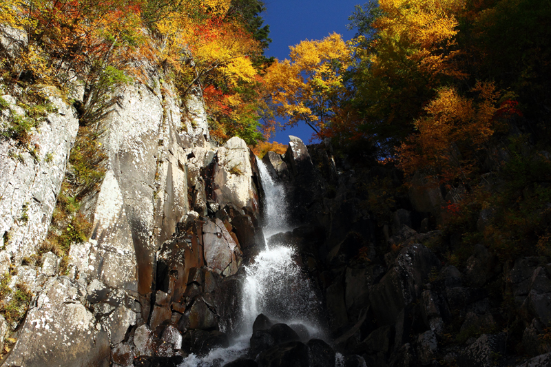 滝つぼから見上げる