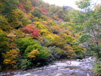 遊歩道は沢沿いを行くのですが、この日は、紅葉も極めて美しく、楽しみながら歩く事が出来ました。但し、昼時ということもあり、中高年団体トレッカーが多かったのには参りましたが・・・。