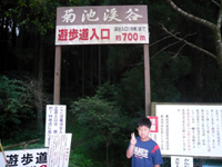 この日は阿蘇を朝5時に出発し、5時50分到着。途中キリと雨で心配しましたが、菊池渓谷は曇り。車を無料駐車場に止めスタートするも渓谷入口まで約10分の下り。滝を見た後、ココを登るのがイヤだったので、車に戻り、有料駐車場に止めなおして6時30分散策リスタートです。ちなみに有料駐車場は開いていましたが、この時間は人がいなくて、結局無料でした。